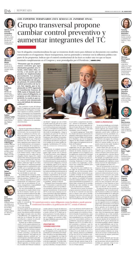Se trata de 16 abogados constitucionalistas, entre los que se encuentran la Subdirectora de Asuntos Jurídicos y Legislativos de LyD, Natalia González, y los Consejeros de Políticas Públicas, Arturo Fermandois y José Francisco García.