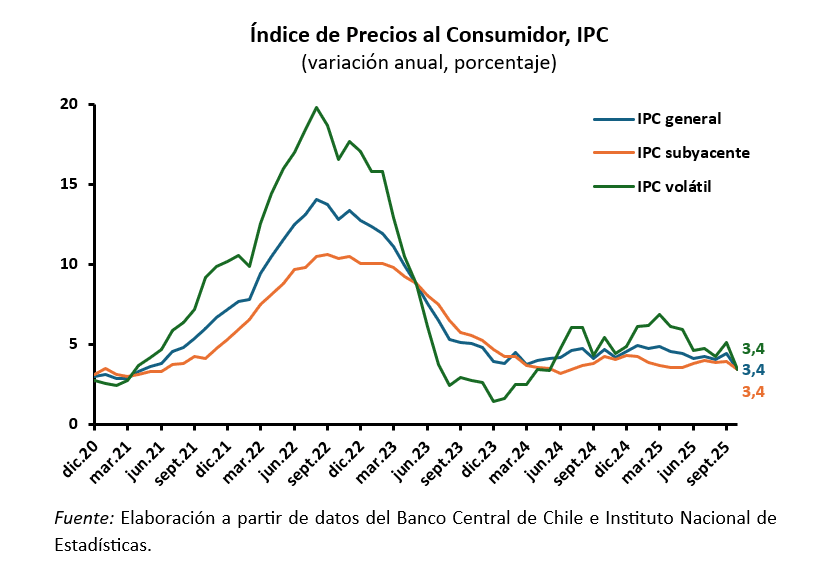 IPC PRESENTA NULA VARIACIÓN EN OCTUBRE Y VARIACIÓN ANUAL SE SITÚA EN 3,4%